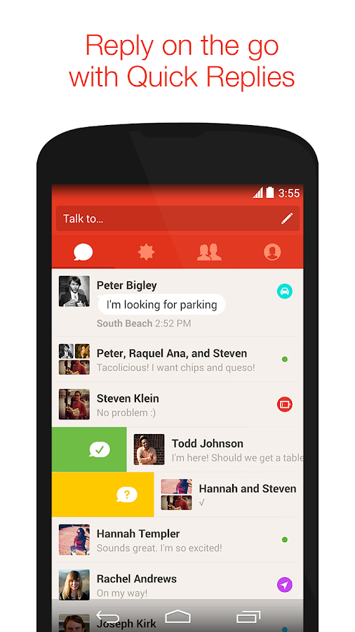 Respostas Rápidas: Ganhe tempo cutucando um amigo ou confirmando uma mensagem direto na lista de mensagens com apenas um deslize do dedo.
