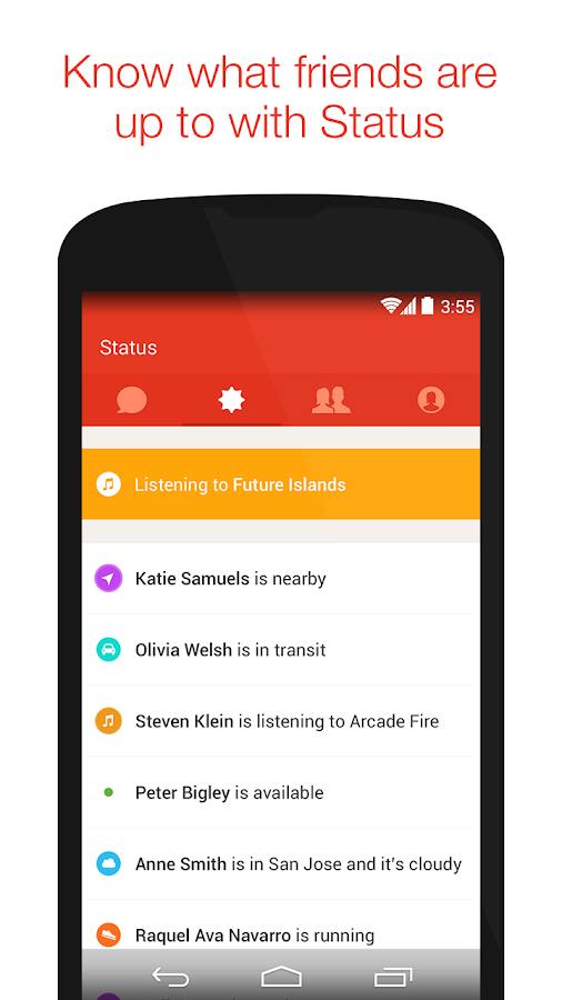 Status de Local: Path Talk pode automaticamente avisar a seus amigos quando você está em trânsito, na vizinhança ou mesmo com a bateria fraca, para que sempre saibam qual a sua disponibilidade — acabando com a dor de cabeça dos mal-entendidos nas conversas.